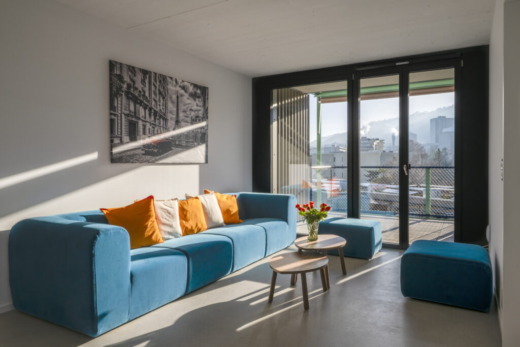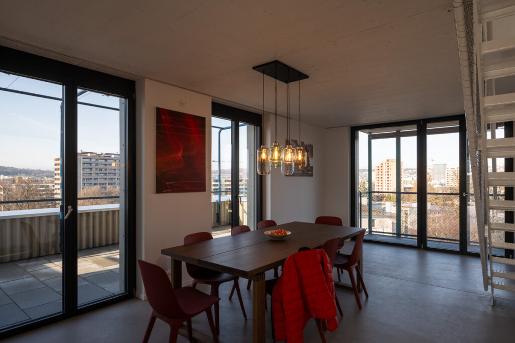 Die Wohngruppe liegt in einer modernen Neubausiedlung in Zürich-Albisrieden und ist mit ÖV gut erreichbar. Die 6.5-Zimmer Maisonette-Wohnung befindet sich im Obergeschoss des Neubaus (Erstbezug).