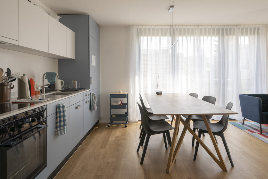 Jede der fünf Wohnungen verfügt über 3 oder 3.5 Zimmer und bietet zwei Personen ein Zuhause in einer modernen Siedlung. Zentrale Werte sind der vertrauensvolle und wertschätzende Umgang miteinander sowie die Fähigkeit, den Alltag weitgehend selbstständig zu meistern.